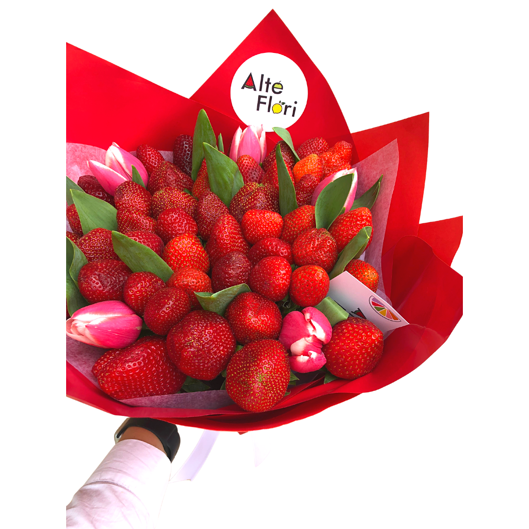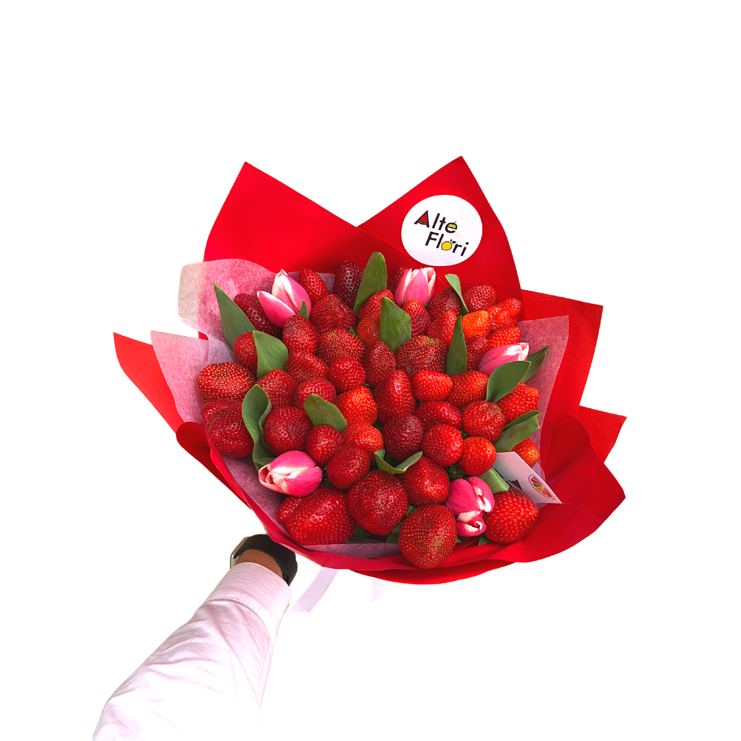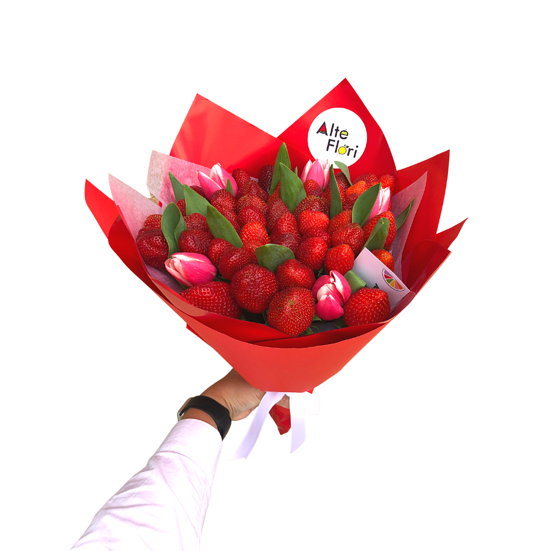 Dedicam acest buchet cu capsuni momentelor in care vrei sa indulcesti ziua unui apropiat, sau cand mergi in vizita si trebuie sa duci desertul. Cu buchetul cu capsuni Alte Flori sigur vei face pe cineva sa saliveze de pofta.